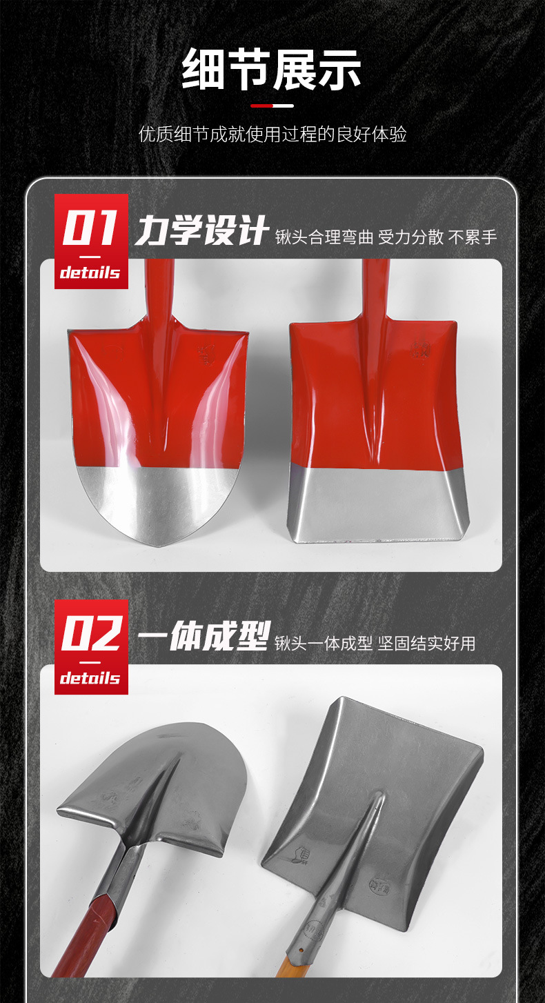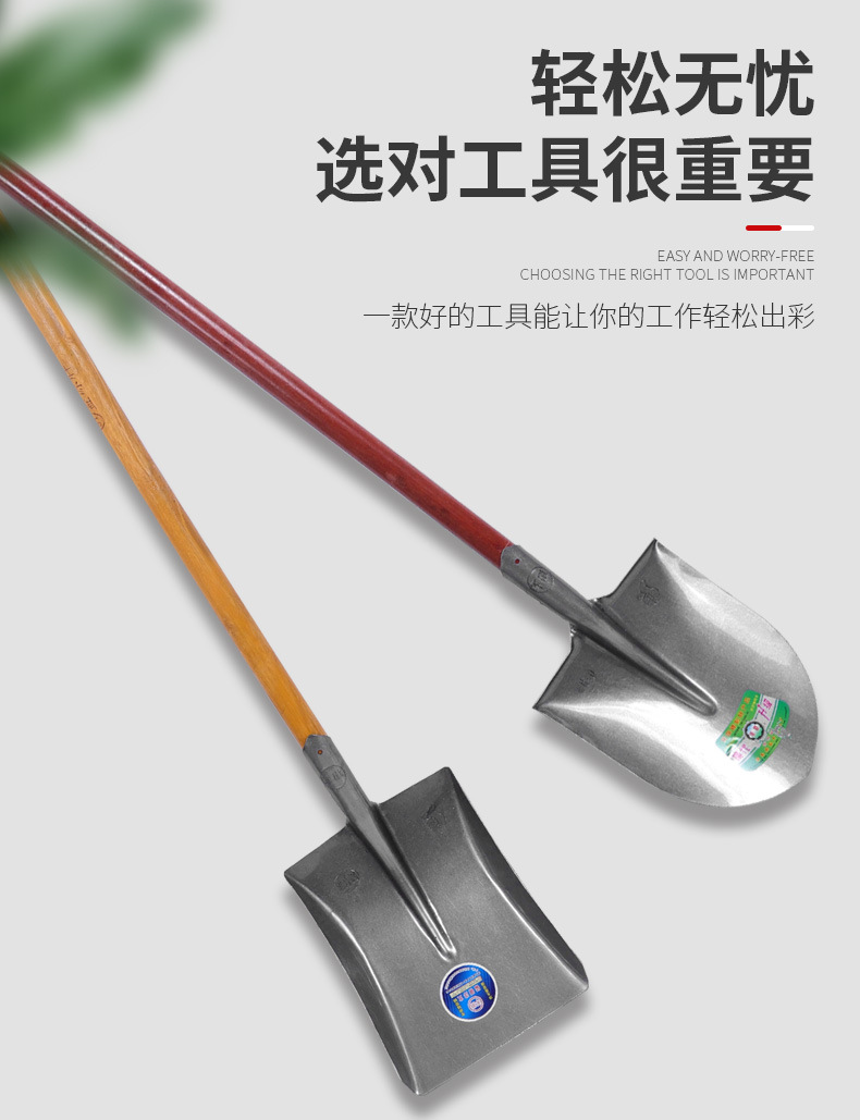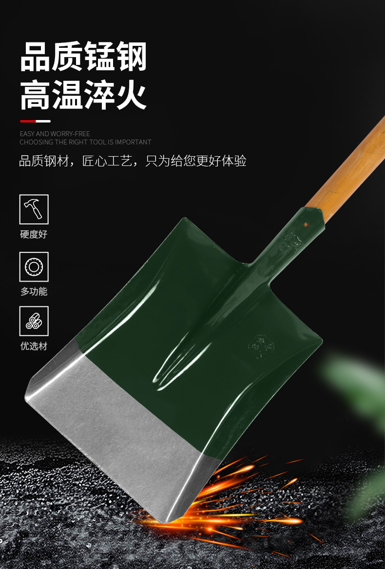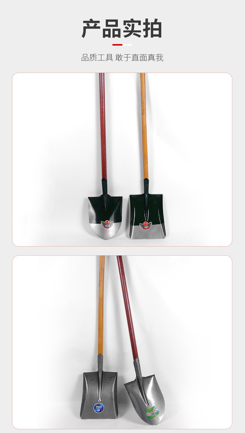 商品名称:铁锹大钢锹钢铲雪铲尖头钢锹铁铲五金农具木柄方头尖头锰钢铁锹