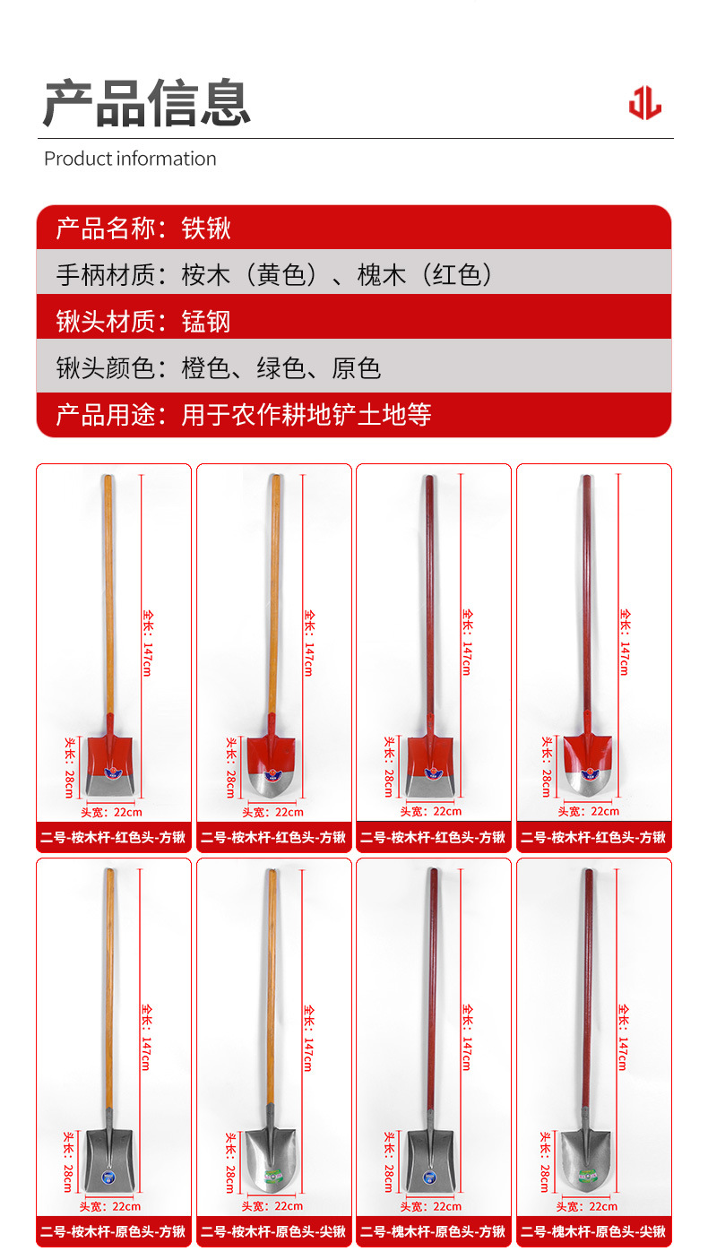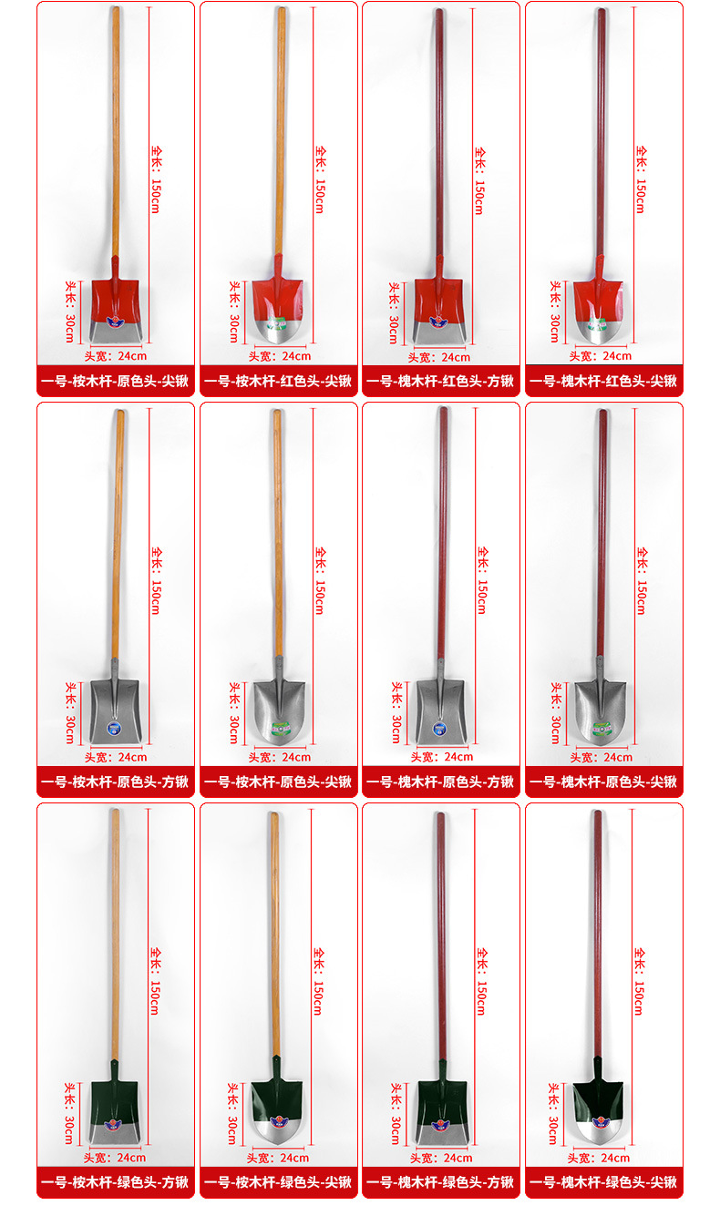 商品规格:圆锹24厘米*30厘米,配1.2米长锹把