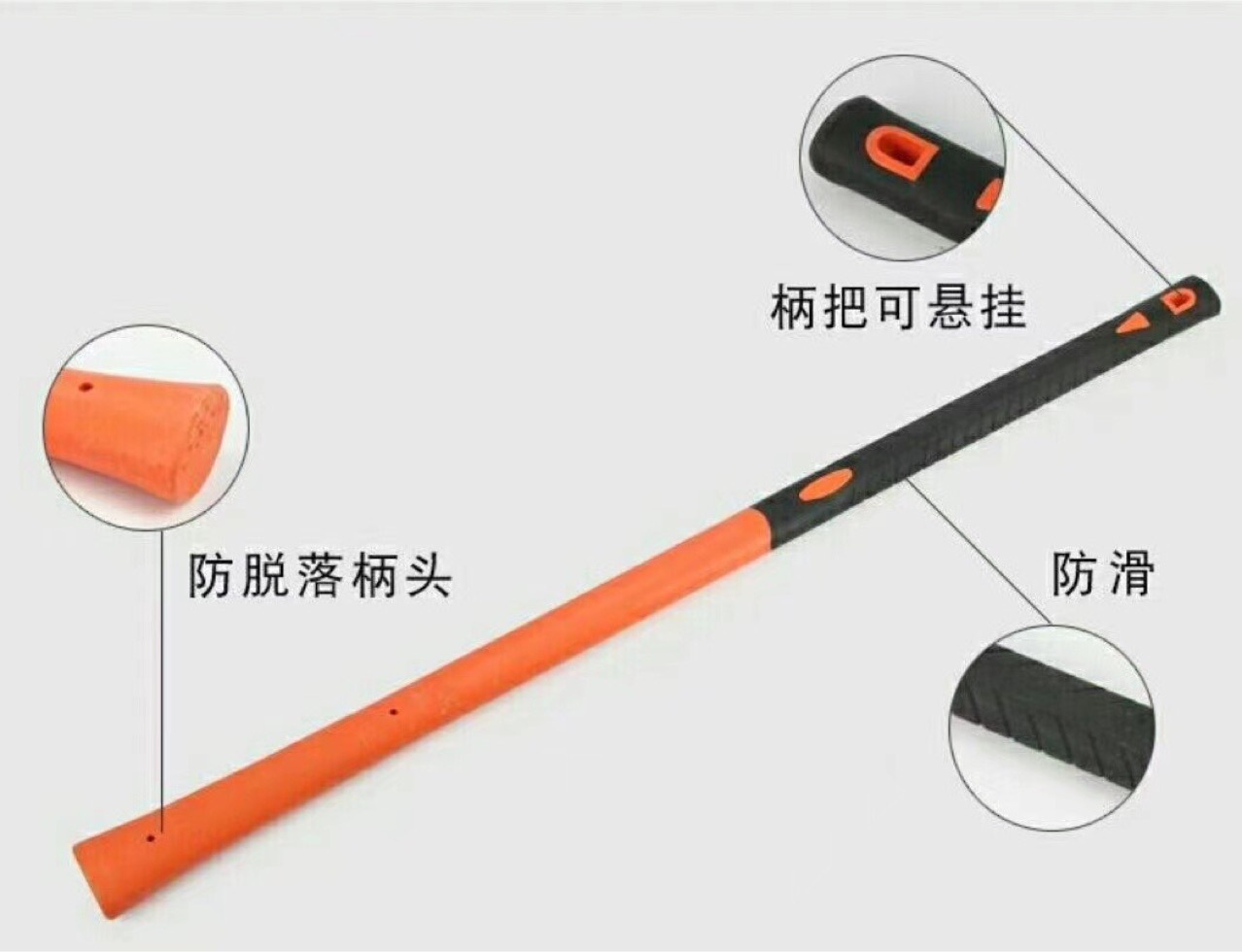 商品名称:合恒工品塑纤维镐把包塑纤维镐柄锤柄红黑柄镐柄