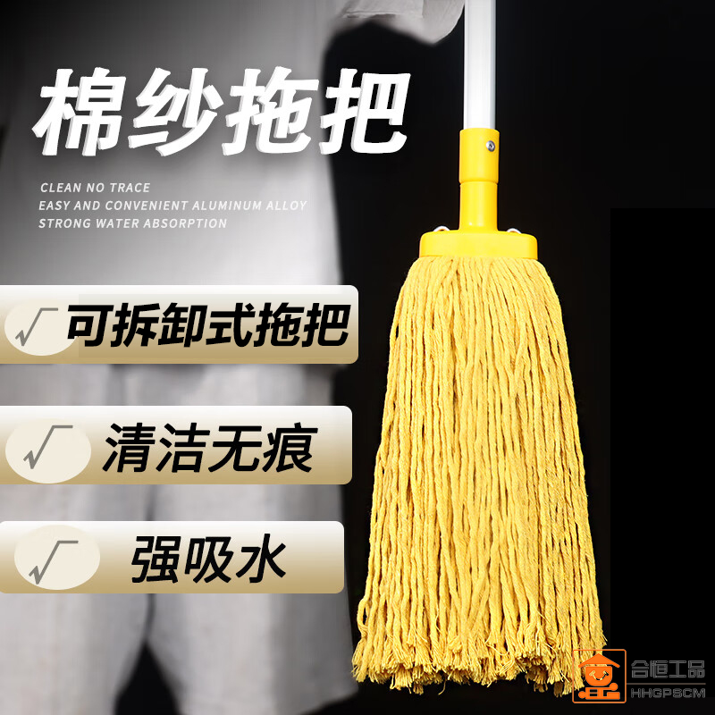 雷璟 棉纱拖把 吸水木杆工厂家用老式墩布物业保洁尘推大号水拖