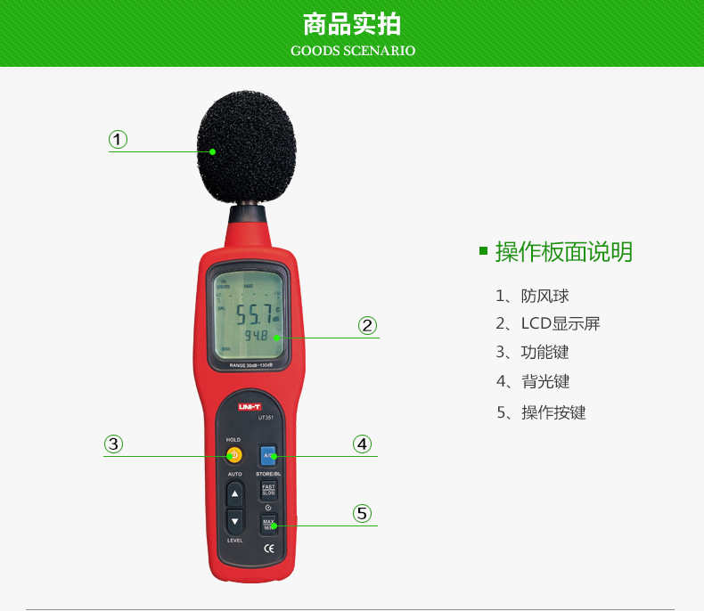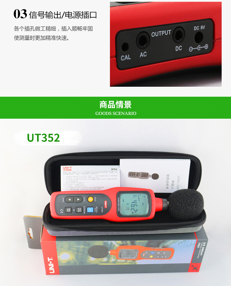 商品名称:UT351/UT352手持声级计数字噪音仪高精度分贝仪家用实验室