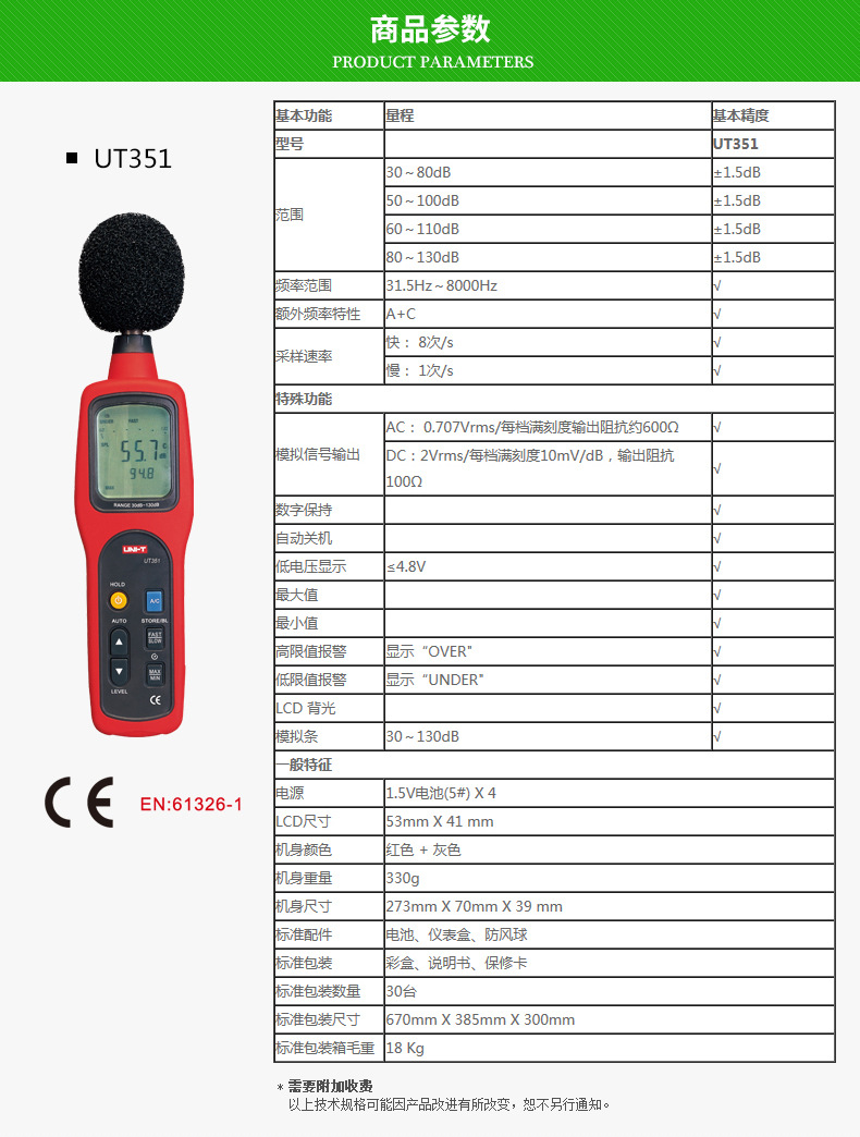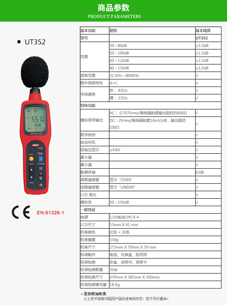 商品规格:UT352 30-130dB