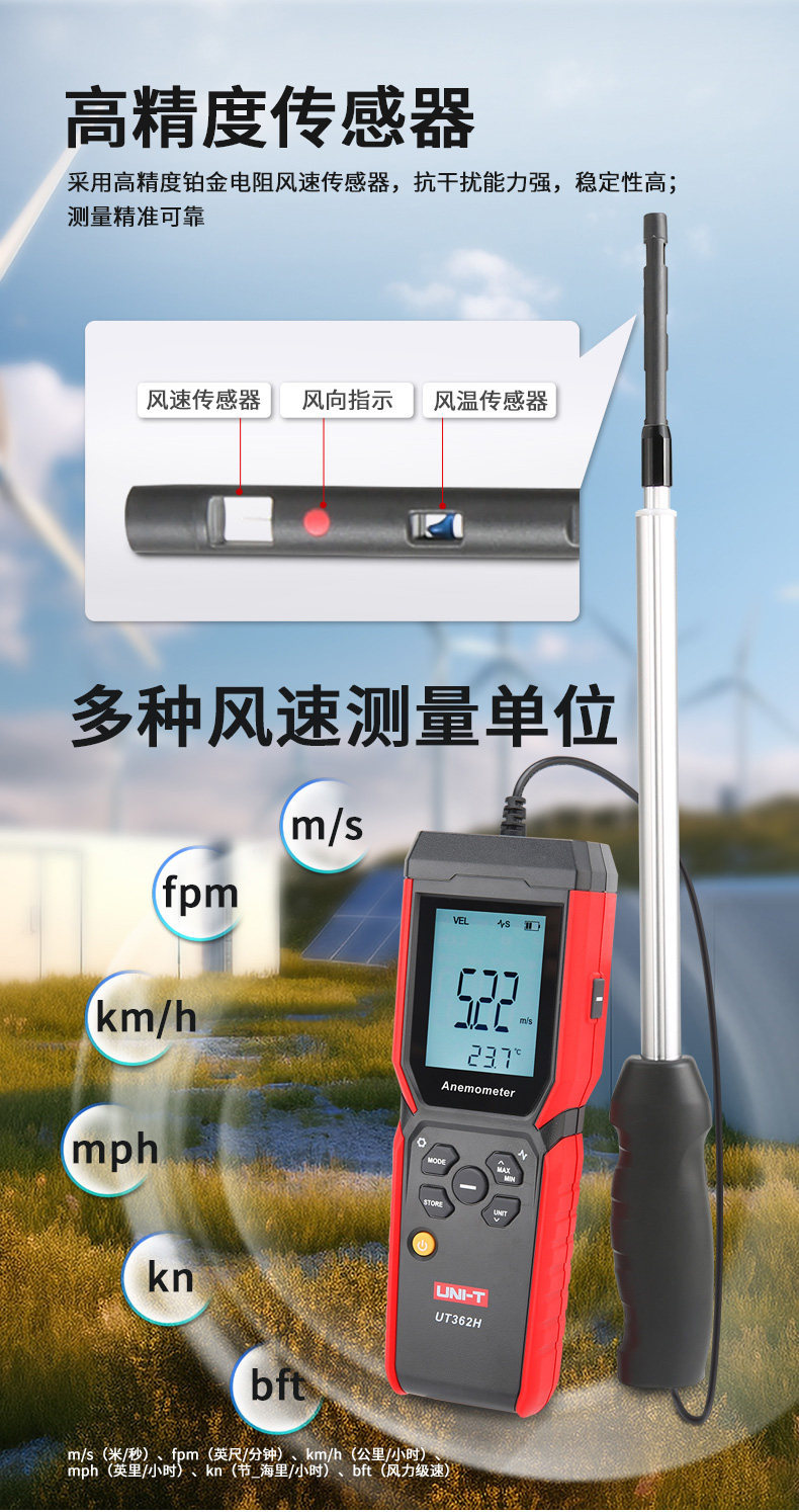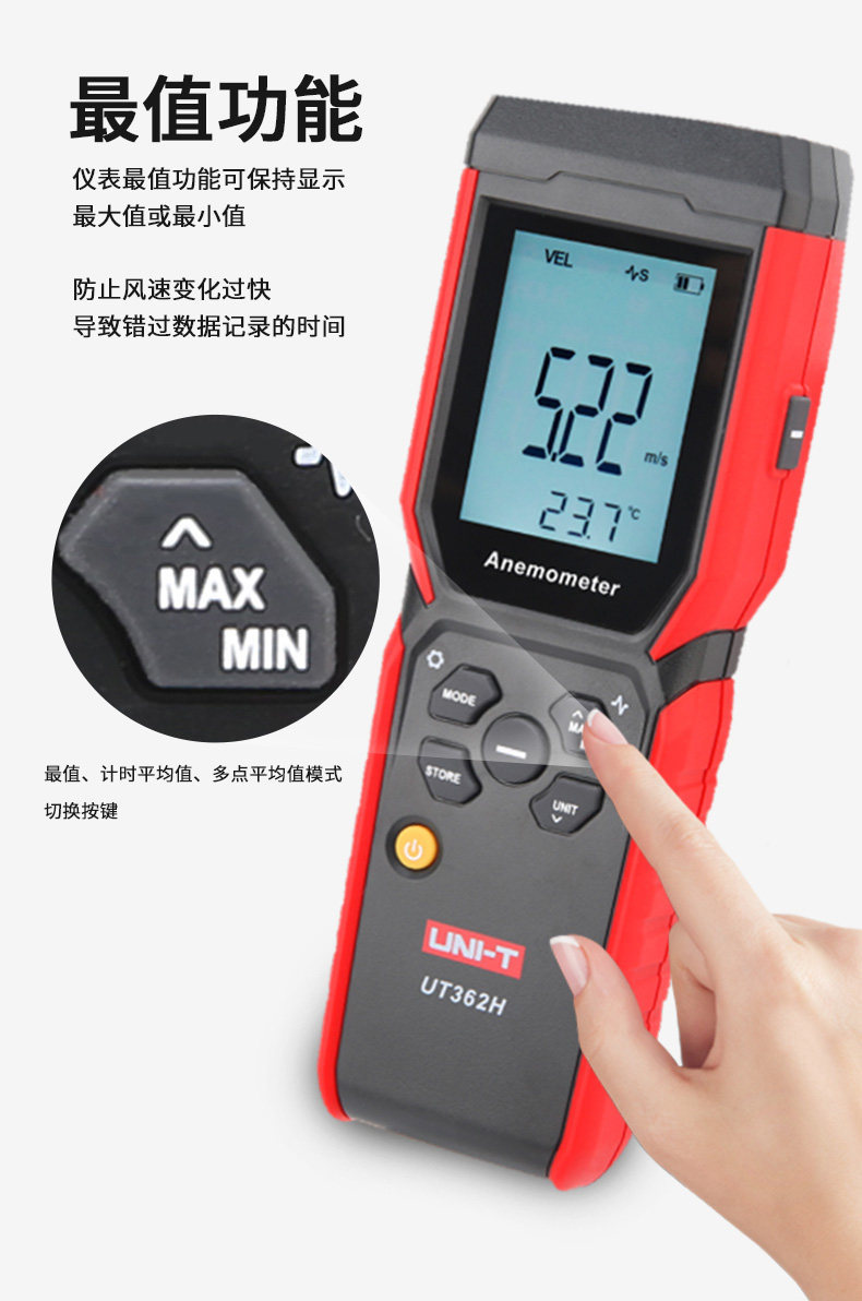 商品名称:优利德UT362H高精度分体热线式风速计管道室内外风速风量风温测量
