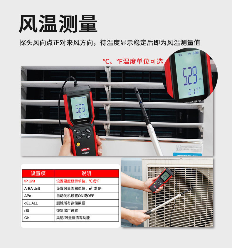 包装清单:1优利德UT362H高精度分体热线式风速计管道室内外风速风量风温测量