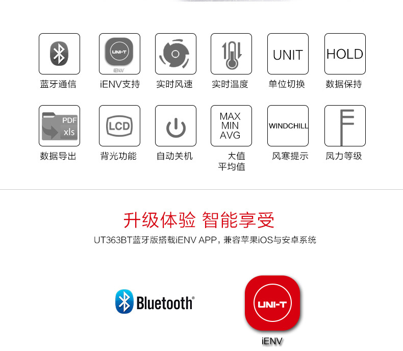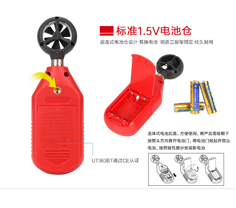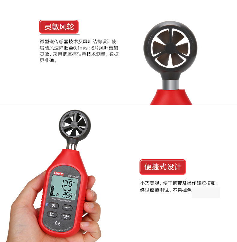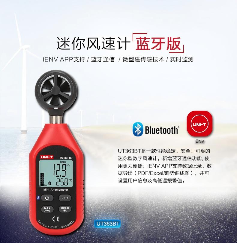 优利德UT363/BT/UT363S蓝牙数字风速仪 风量风力风温监测表风速计带蓝牙版/分体式