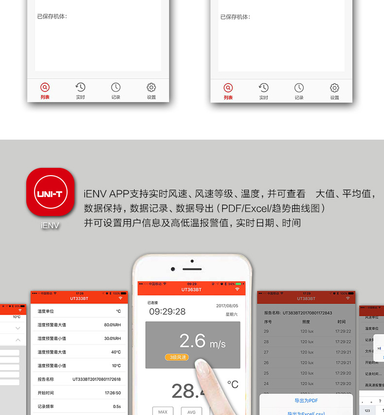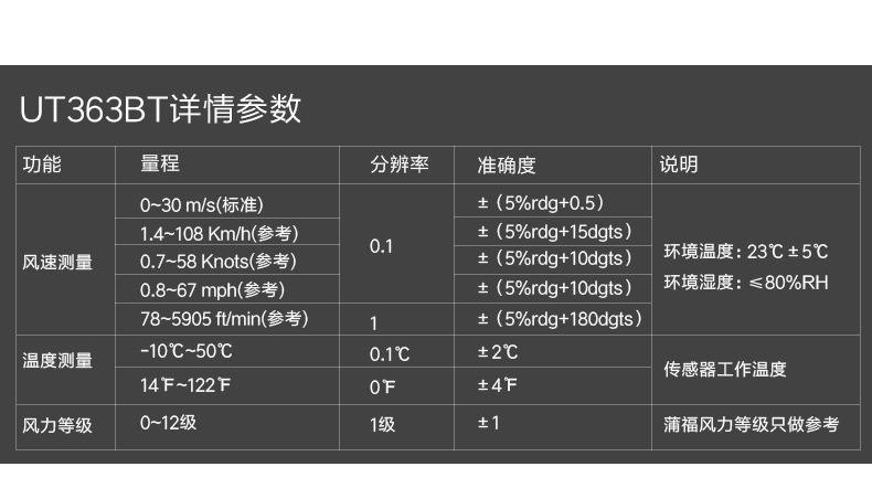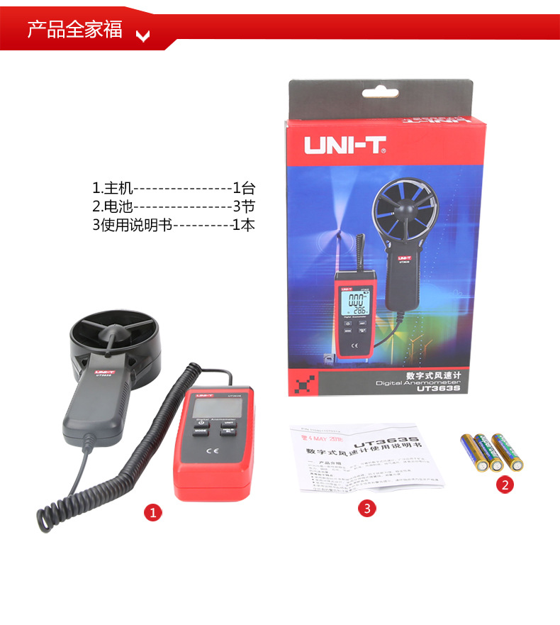 包装清单:1优利德UT363/BT/UT363S蓝牙数字风速仪 风量风力风温监测表风速计带蓝牙版/分体式