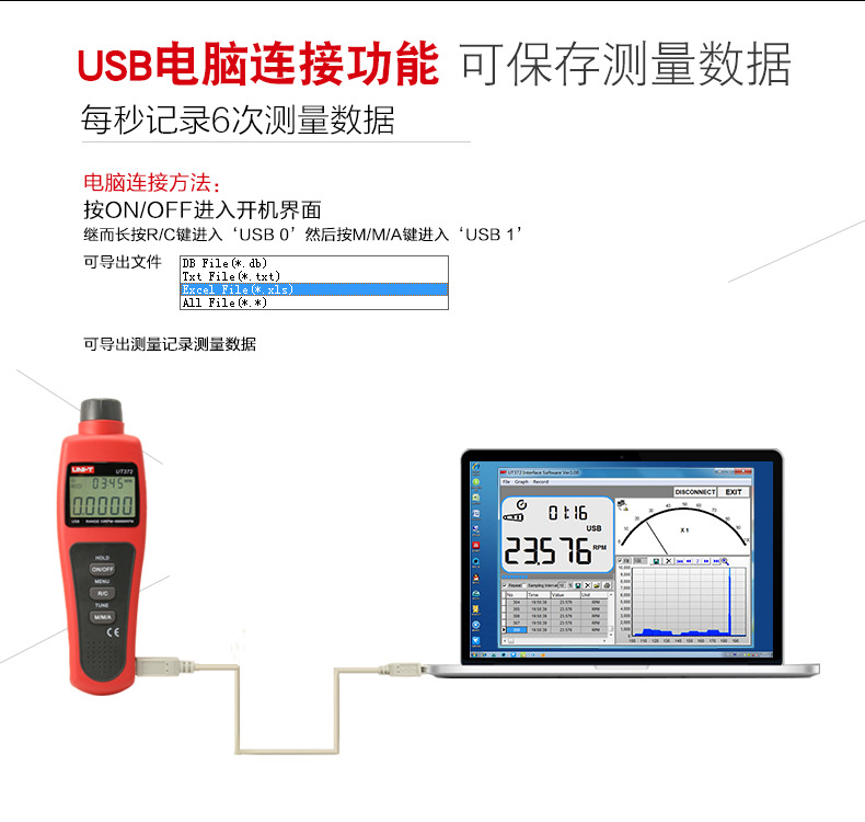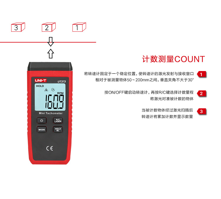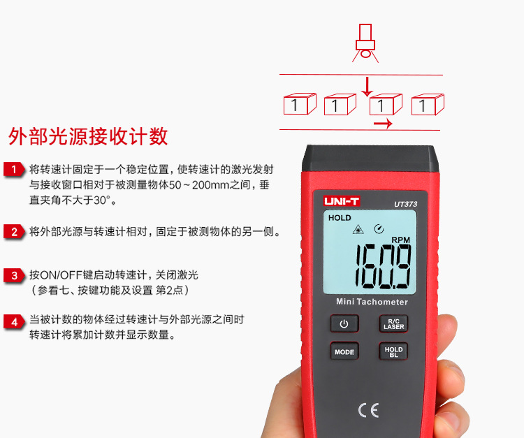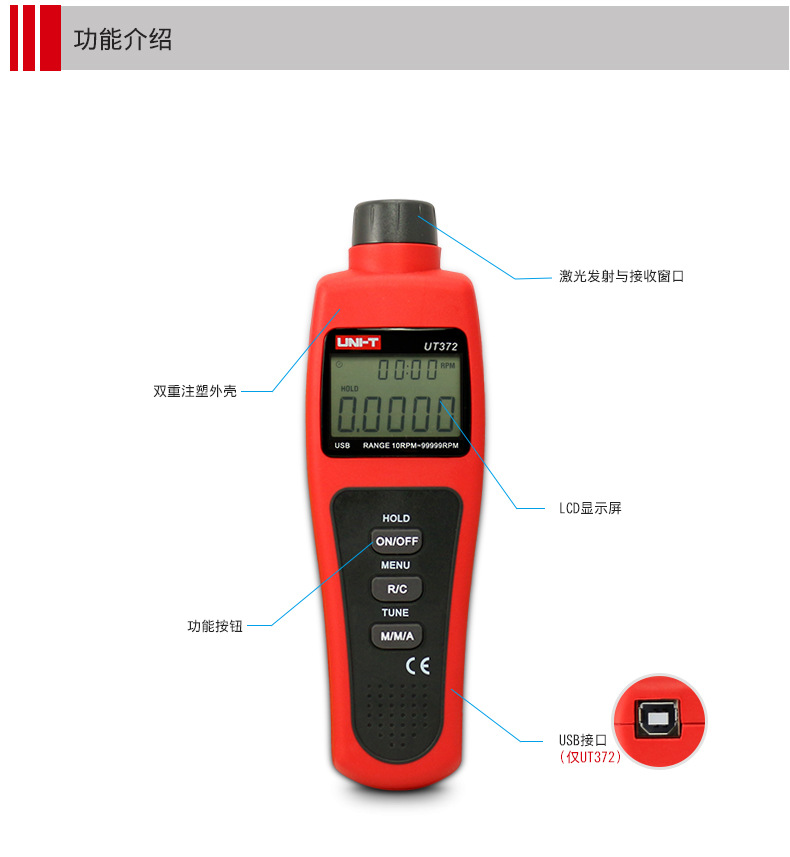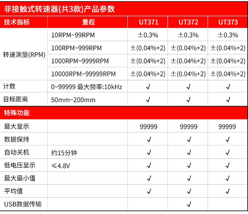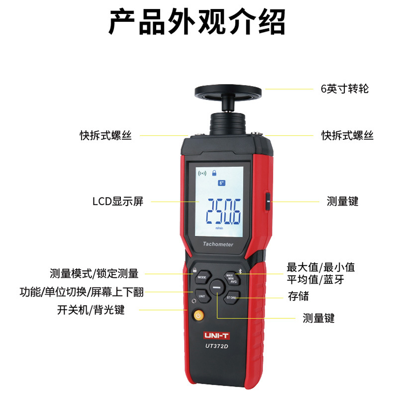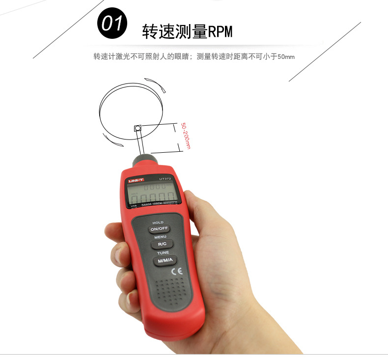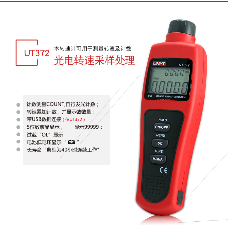 优利德转速表UT371/UT372D数显转速计非接触光电马达电机测转速仪