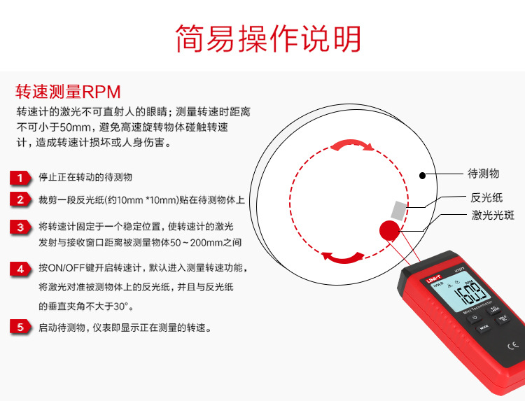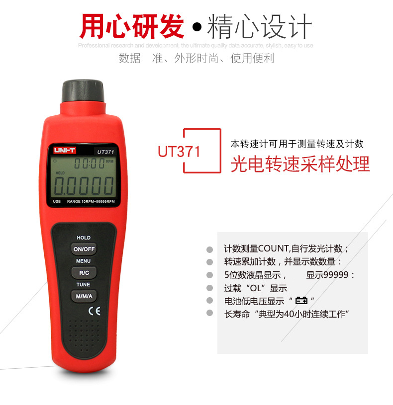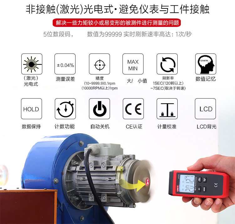 商品名称:优利德转速表UT371/UT372D数显转速计非接触光电马达电机测转速仪