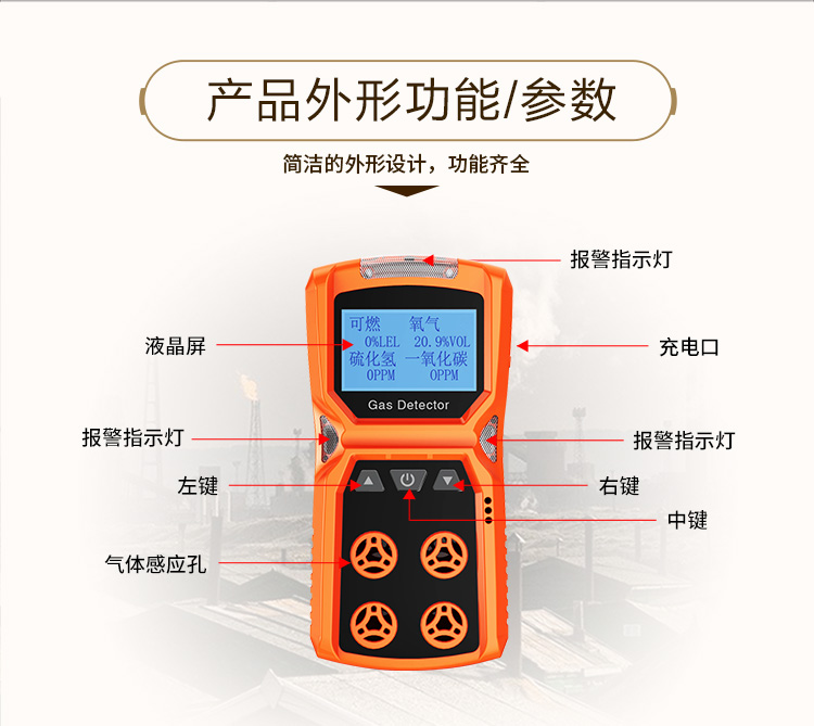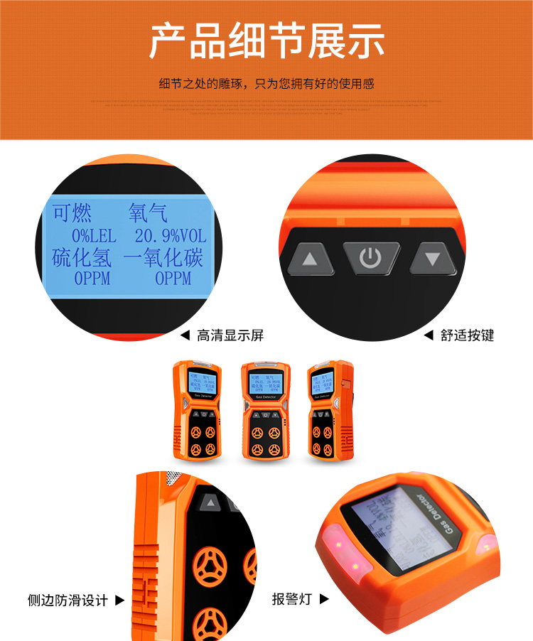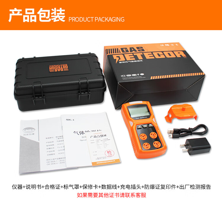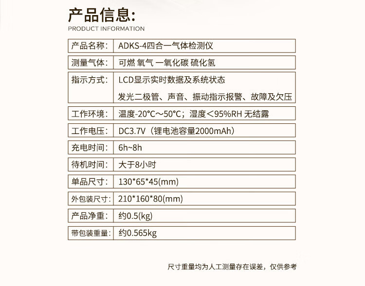 包装清单:1爱德克斯四合一气体检测仪可燃氧气一氧化碳硫化氢有限空间有害气体报警器