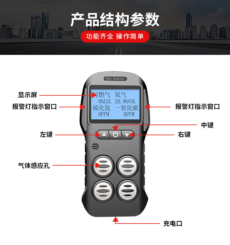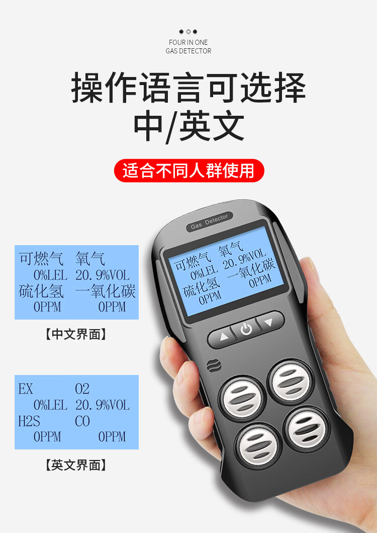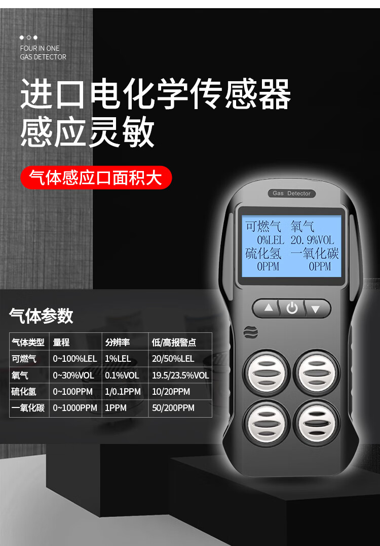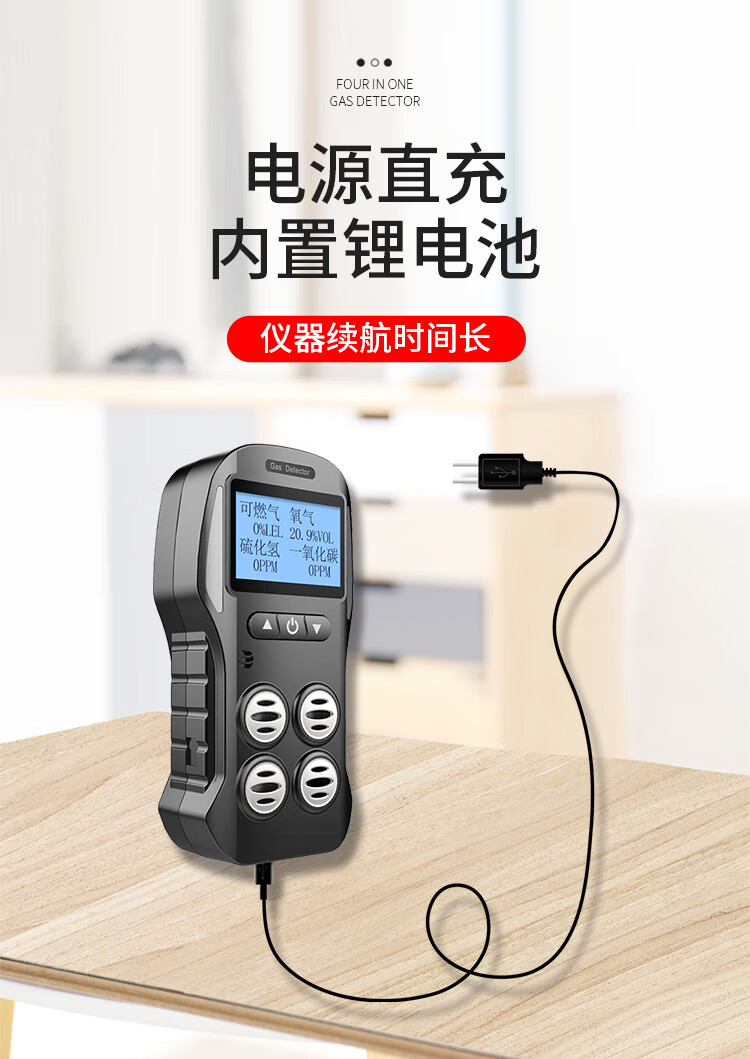 包装清单:1四合一气体检测仪便携式氧气CO硫化氢可燃有限空间浓度报警器 四合一(X-4+)