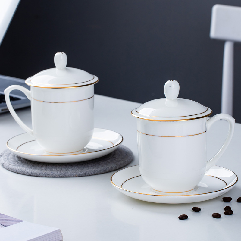 陶瓷杯 带盖办公杯会议杯碟 骨瓷茶杯子陶瓷礼品