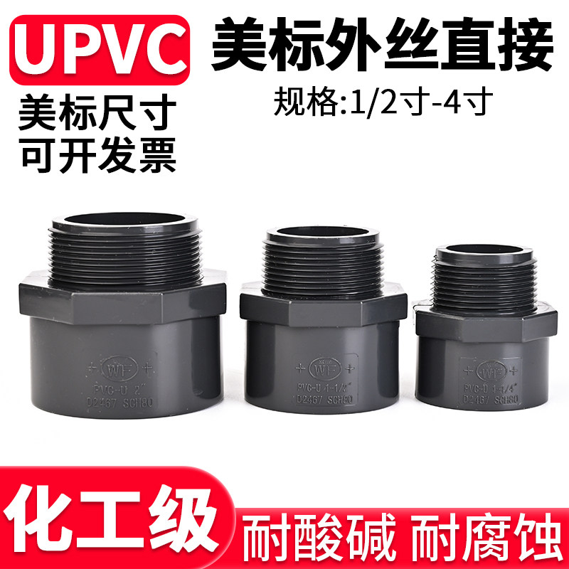 美标尺寸UPVC外丝直接化工外牙螺纹工业PVC管道接头水管直通对接