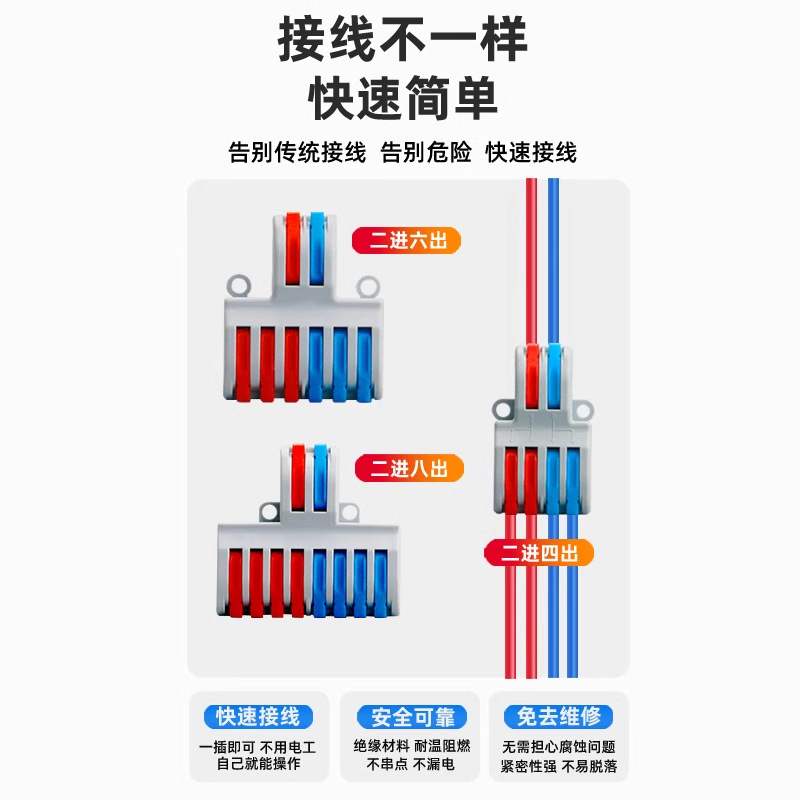 按压式接线器快速接线端子SPL二进多出电线连接器分线器并线器