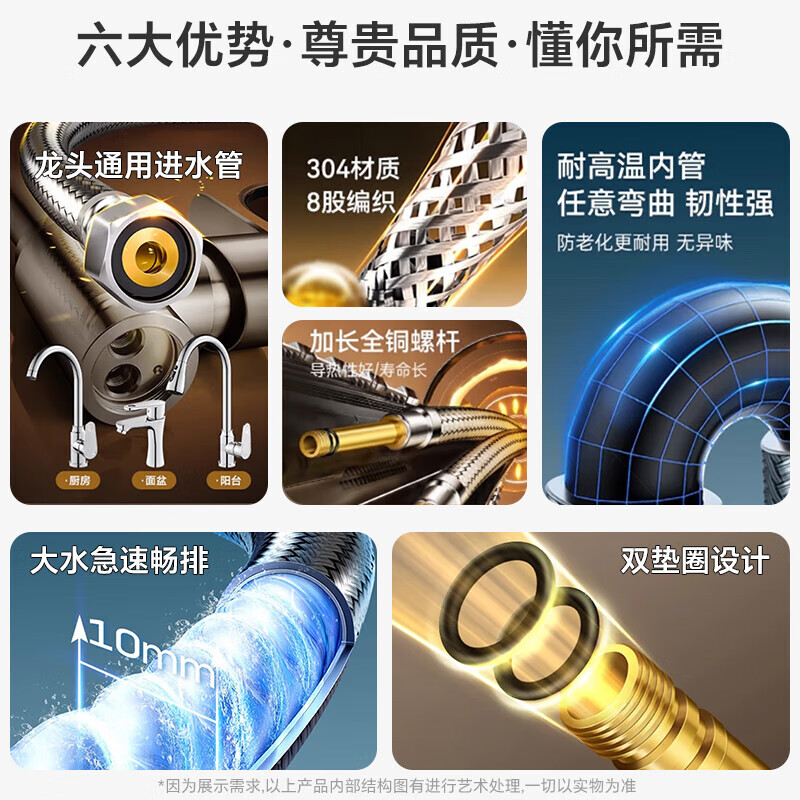 软管4分双头金属钢丝304不锈钢编织热水器马桶水龙头进水管花洒