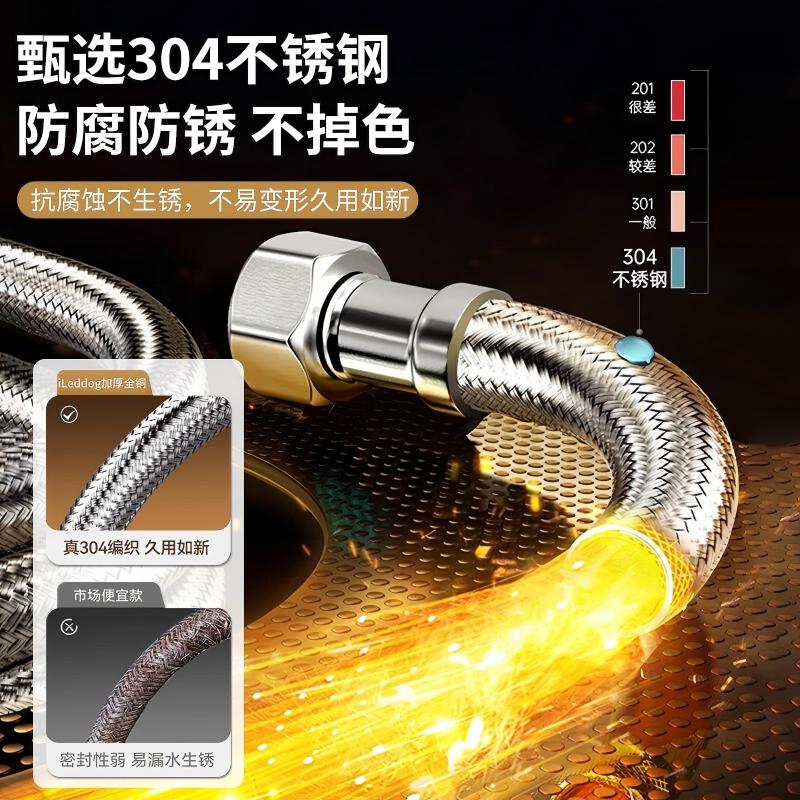 包装清单:1软管4分双头金属钢丝304不锈钢编织热水器马桶水龙头进水管花洒
