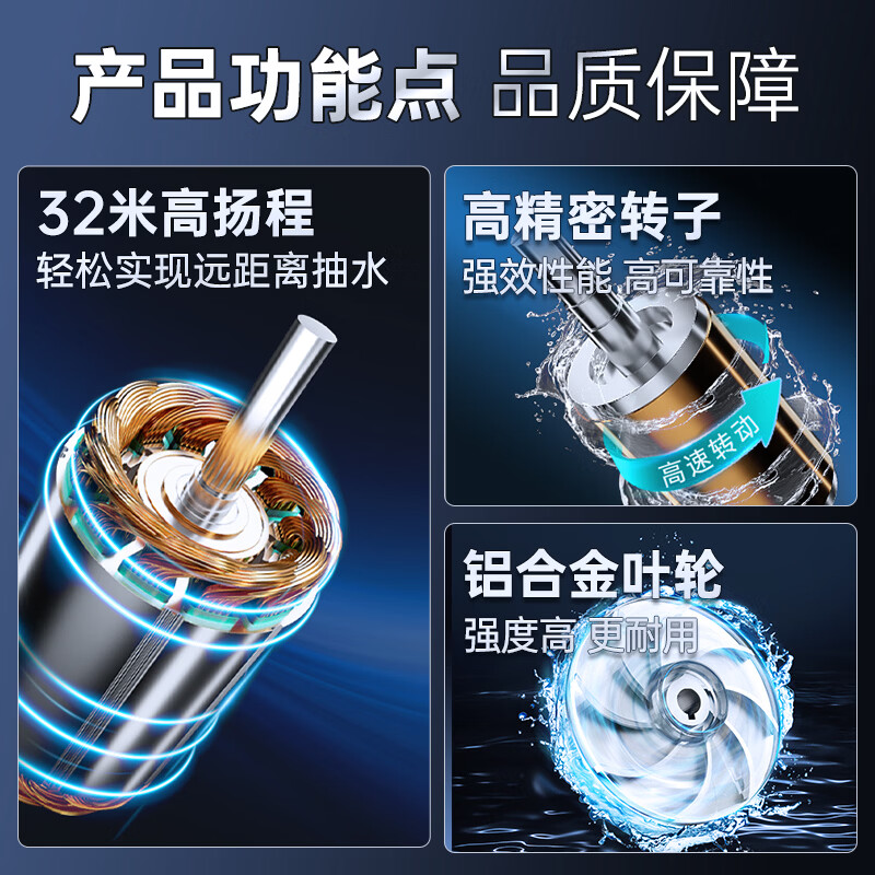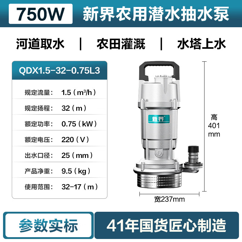 潜水泵 农田灌溉抽水泵农用铸铝排水泵家用220V 750瓦1.5方32米(1寸)
