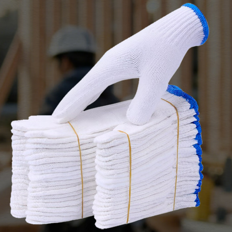 灯罩棉线手套 灯罩棉蓝边十针线手套