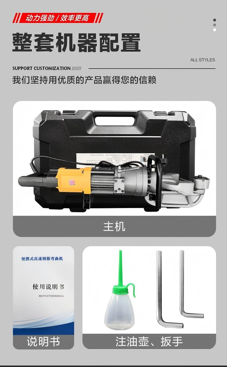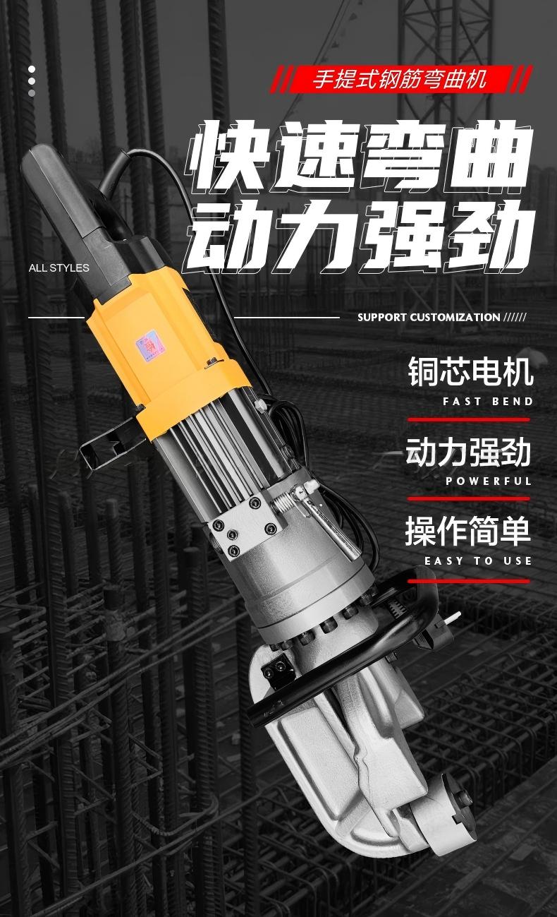 包装清单:1HRB-25型手持钢筋弯曲机手拿电动折弯机便捷式液压调直弯曲一体机