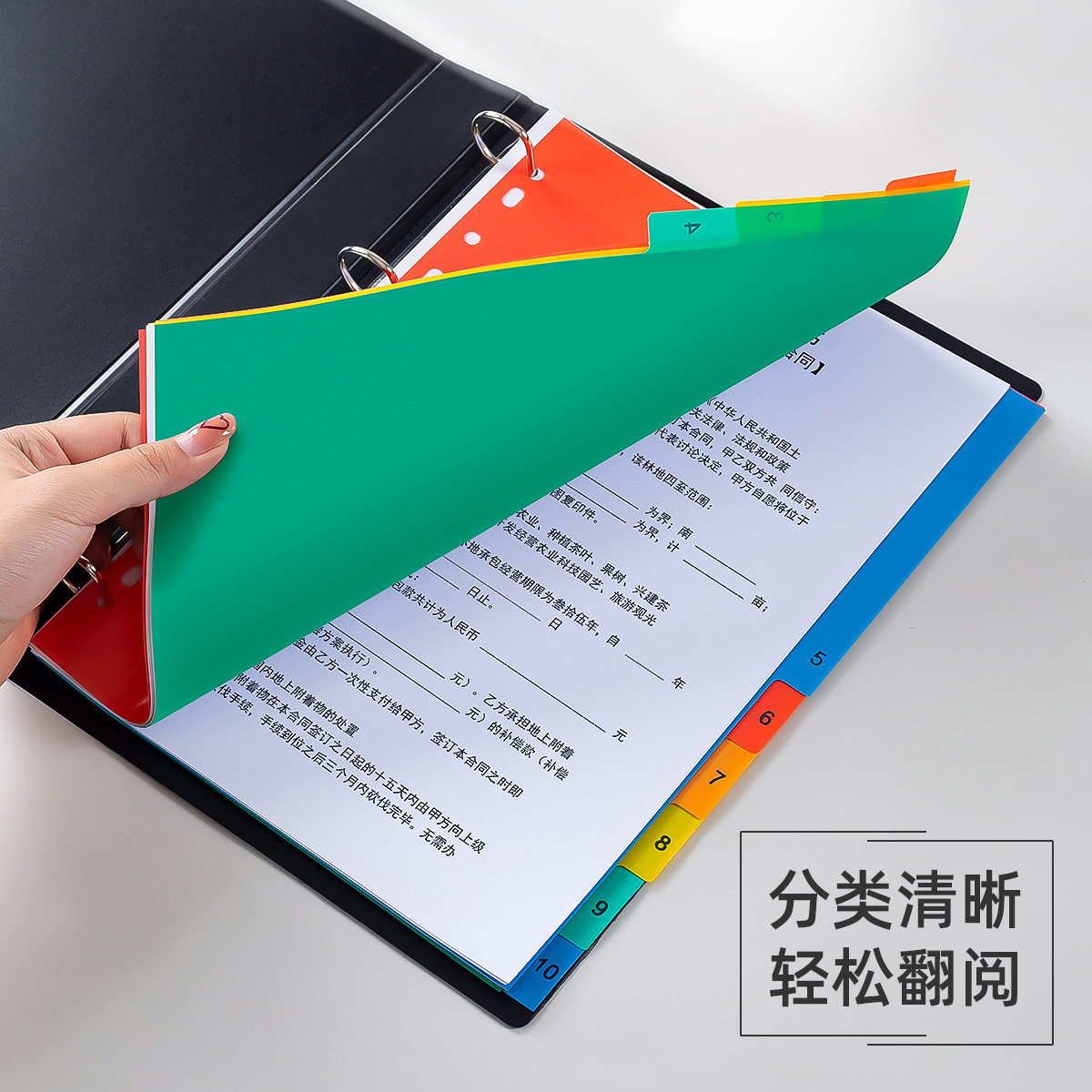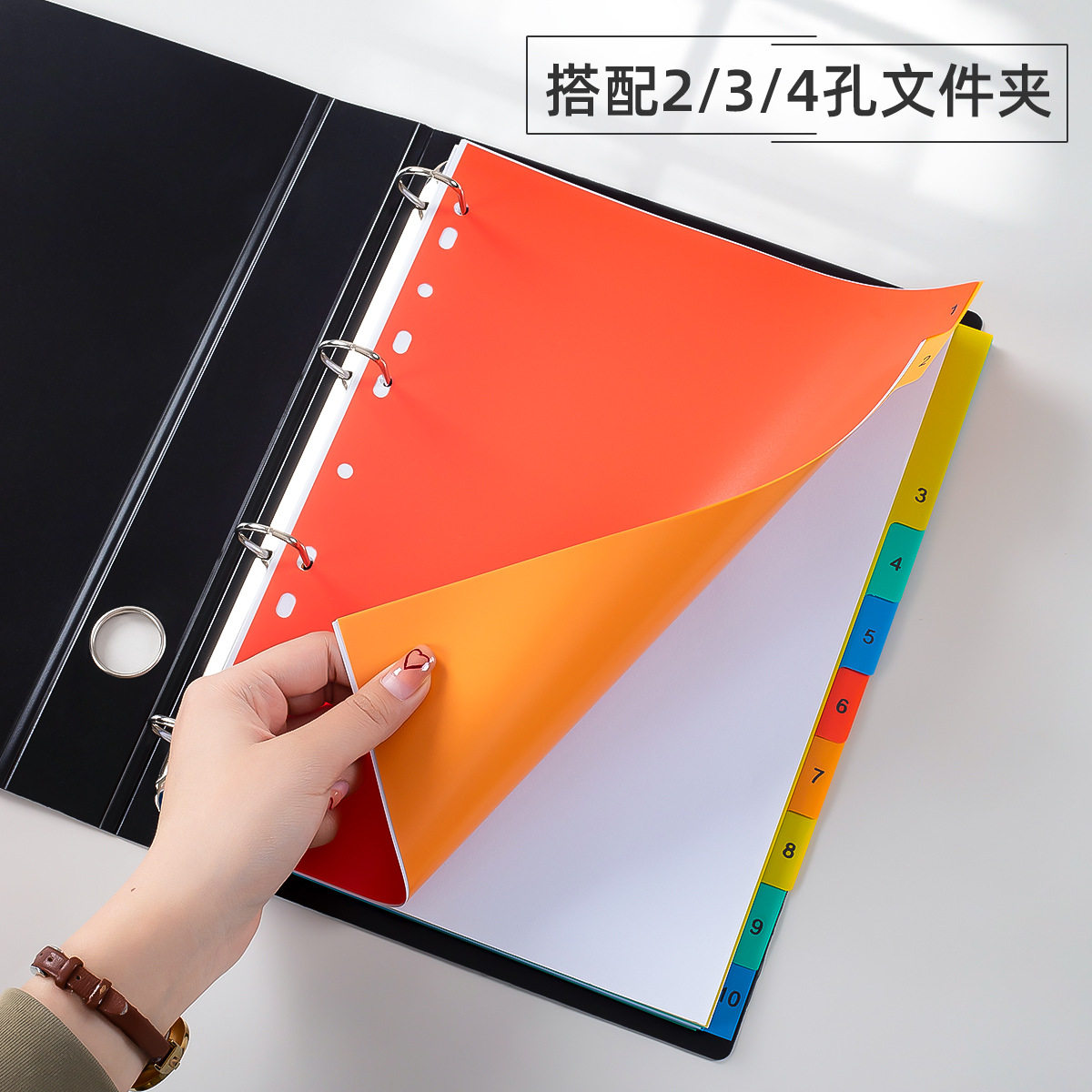 A4索引纸数字隔页纸11孔塑料分页纸pp彩色分类纸多页打孔文件夹用活页夹彩色分页纸标签书签
