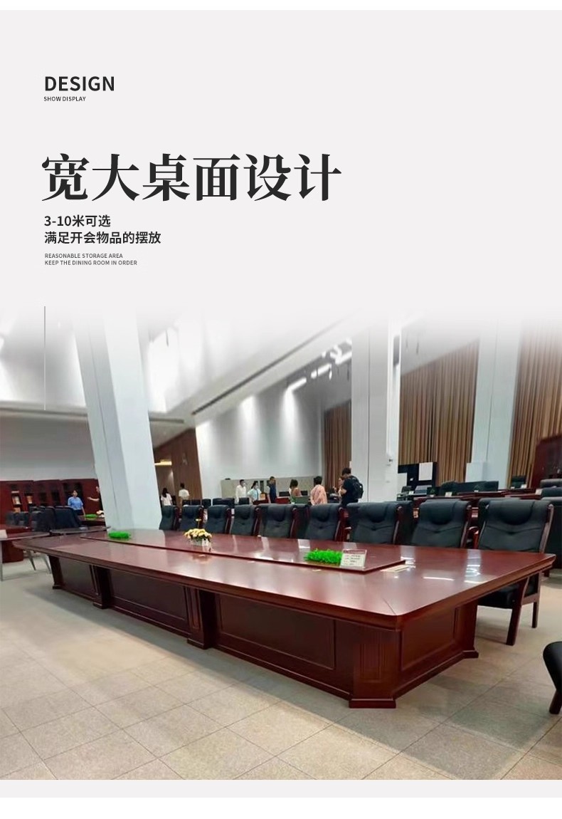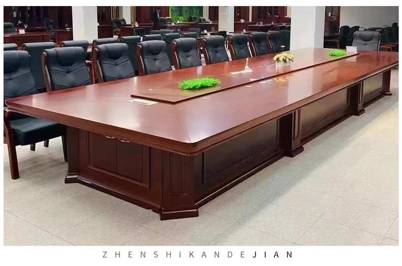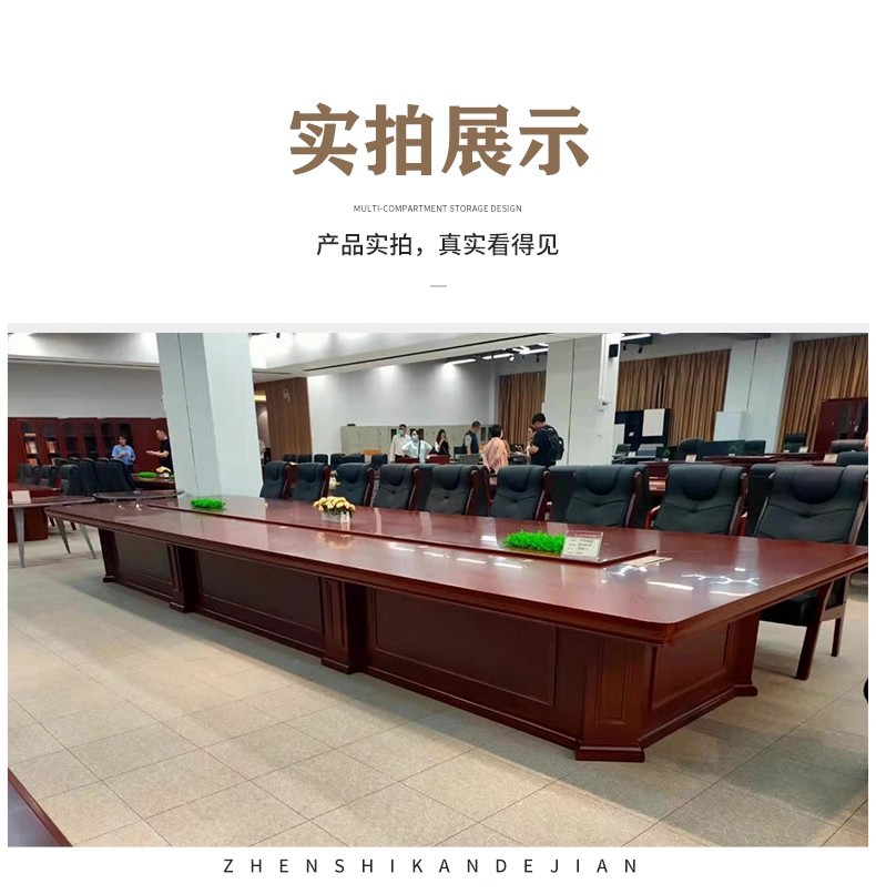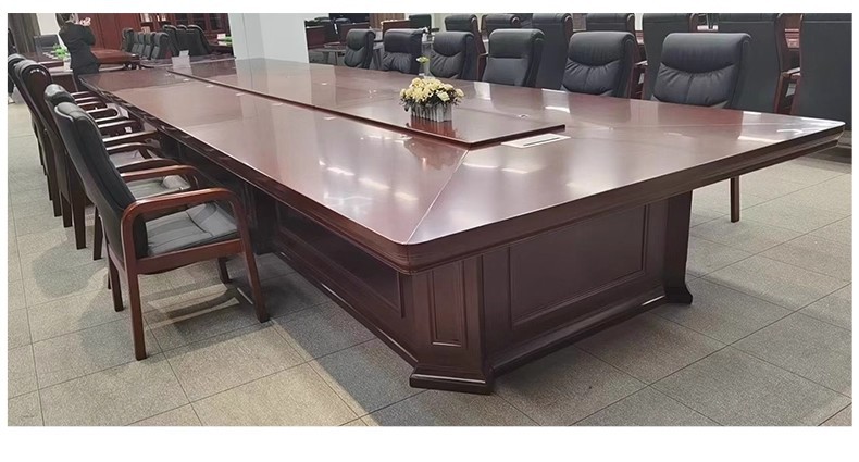商品名称:长方形条形中式办公家具厂家实木木皮会议桌大型会议桌油漆会议桌可定制
