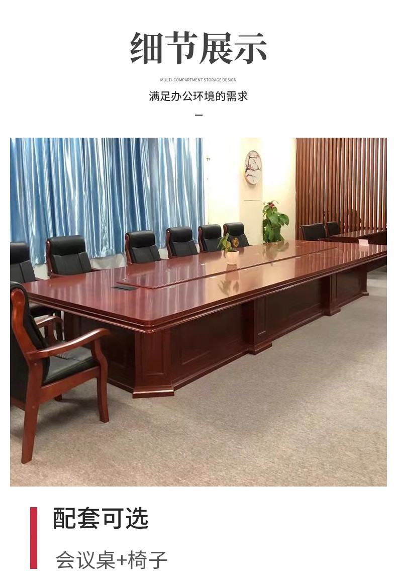包装清单:1长方形条形中式办公家具厂家实木木皮会议桌大型会议桌油漆会议桌可定制