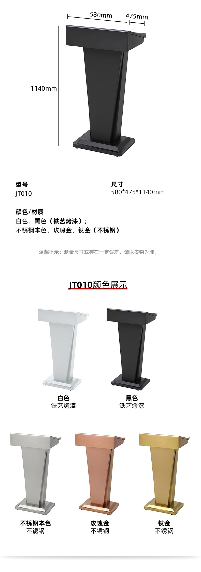 包装清单:1不锈钢演讲台发言台店面迎宾台主持台咨客台接待台导购台讲台桌