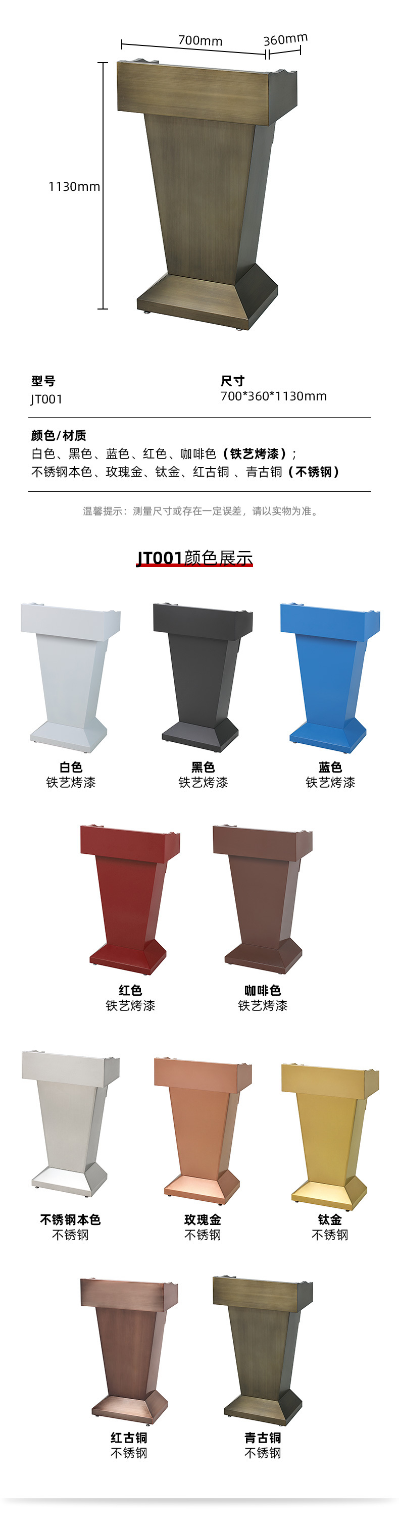 商品名称:不锈钢演讲台发言台店面迎宾台主持台咨客台接待台导购台讲台桌